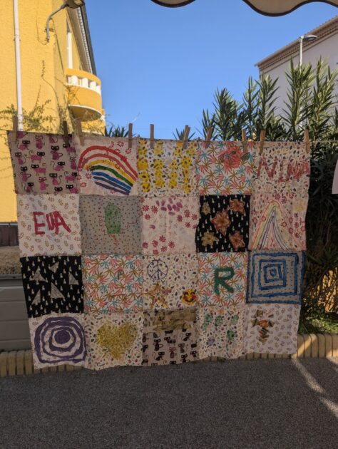 Ils ont réalisé une création collective de carrés de tissu colorés façon « patchwork », suspendus comme une œuvre commune. Bravo aux élèves pour leur créativité !